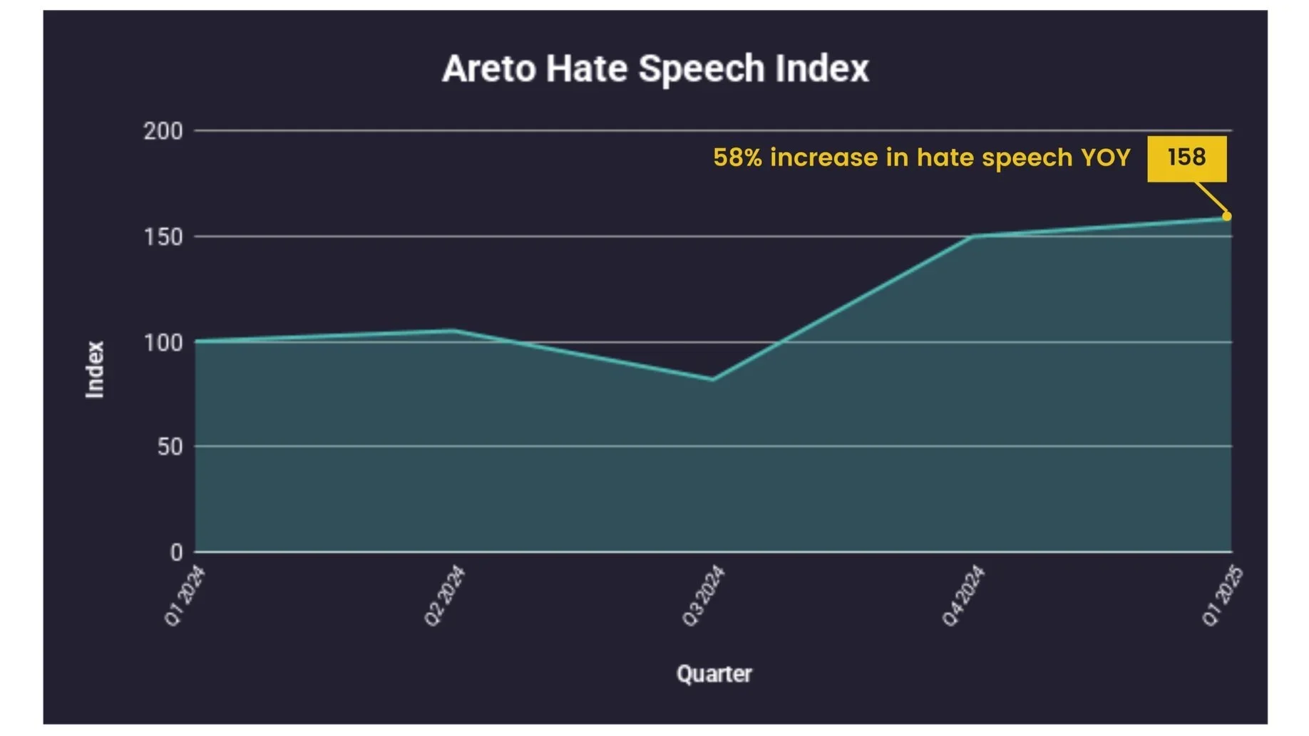 While Q1 2025 abuse levels are elevated, we anticipate the Areto Hate Speech Index will continue to evolve as our detection models adapt to the shifting nature of online harm—capturing not just the scale, but the speed and volatility of abuse in real time.