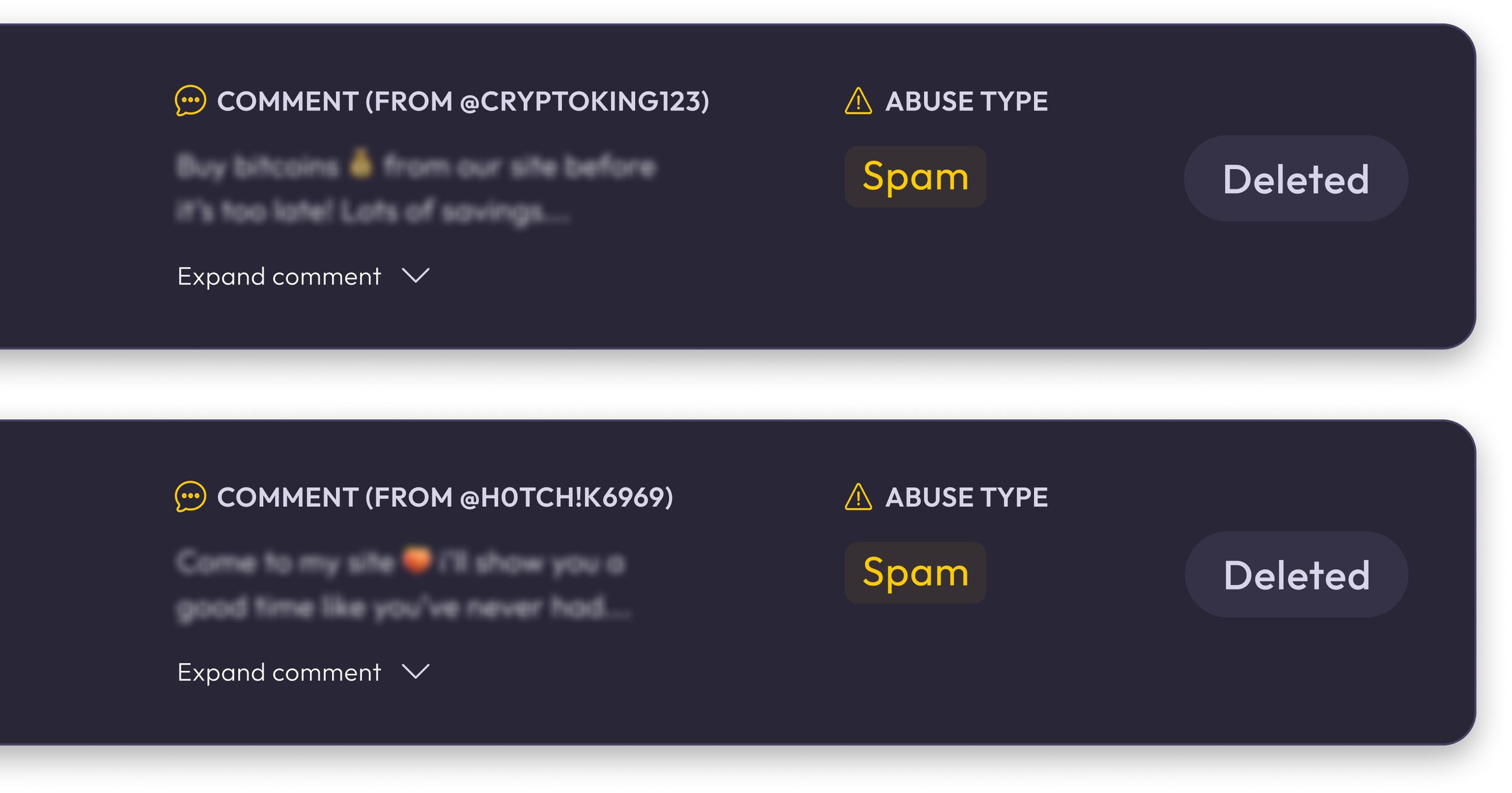 Spam bots inundate brand feed: Each time they posted, their brand feed was plagued with 300+ spam comments per game.